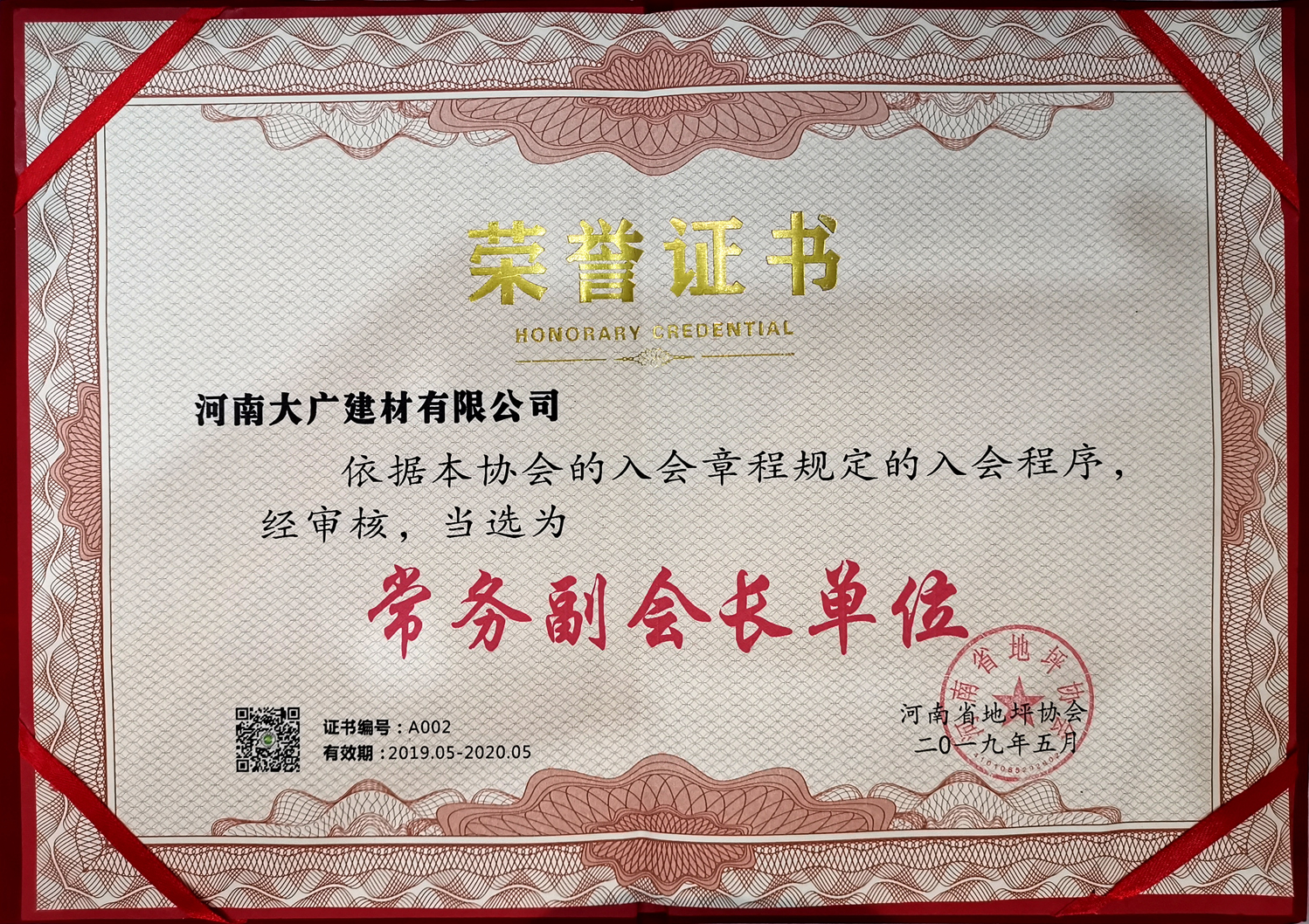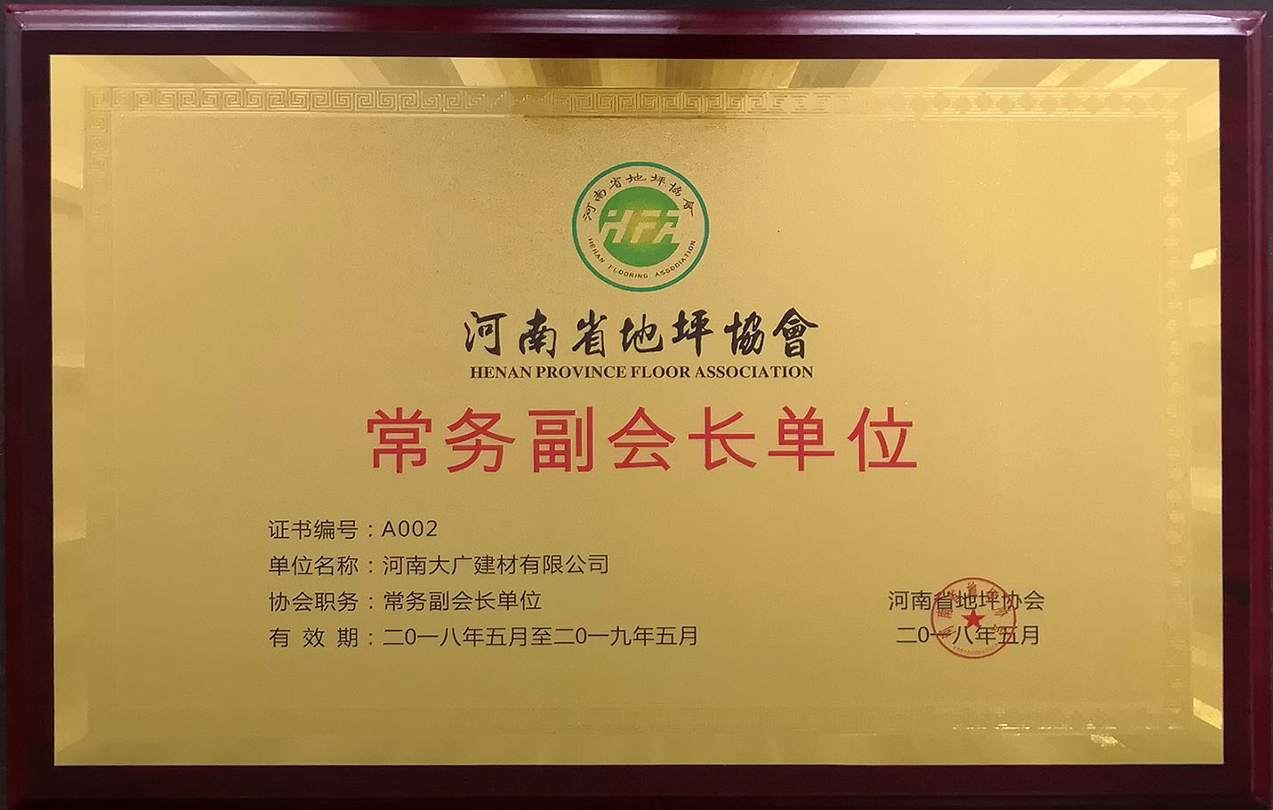常務(wù)副會(huì)長單位 證書