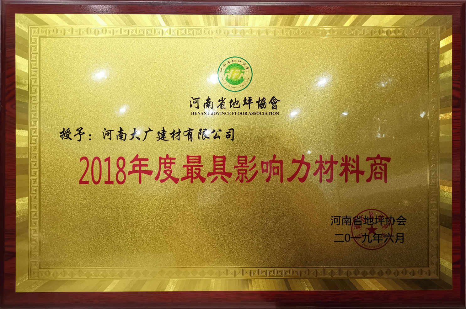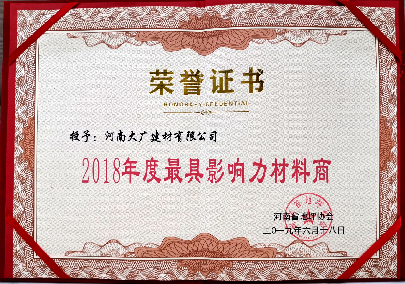 榮獲:河南省地坪協(xié)會(huì)*具影響力材料商 稱號